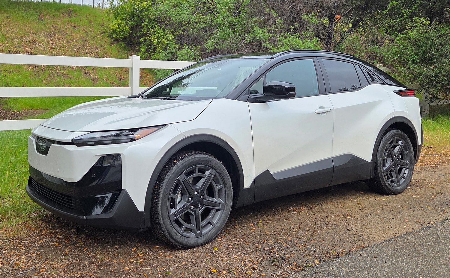 To our eyes, this entry-level Subaru EV looks like a Toyota both inside and out. The design language and some of the unexpected body accents are less off-road Subaru and more urban Toyota. Inside, the interior layout, instrument cluster, and central infotainment touchscreen are all directly traceable to current Toyota models.